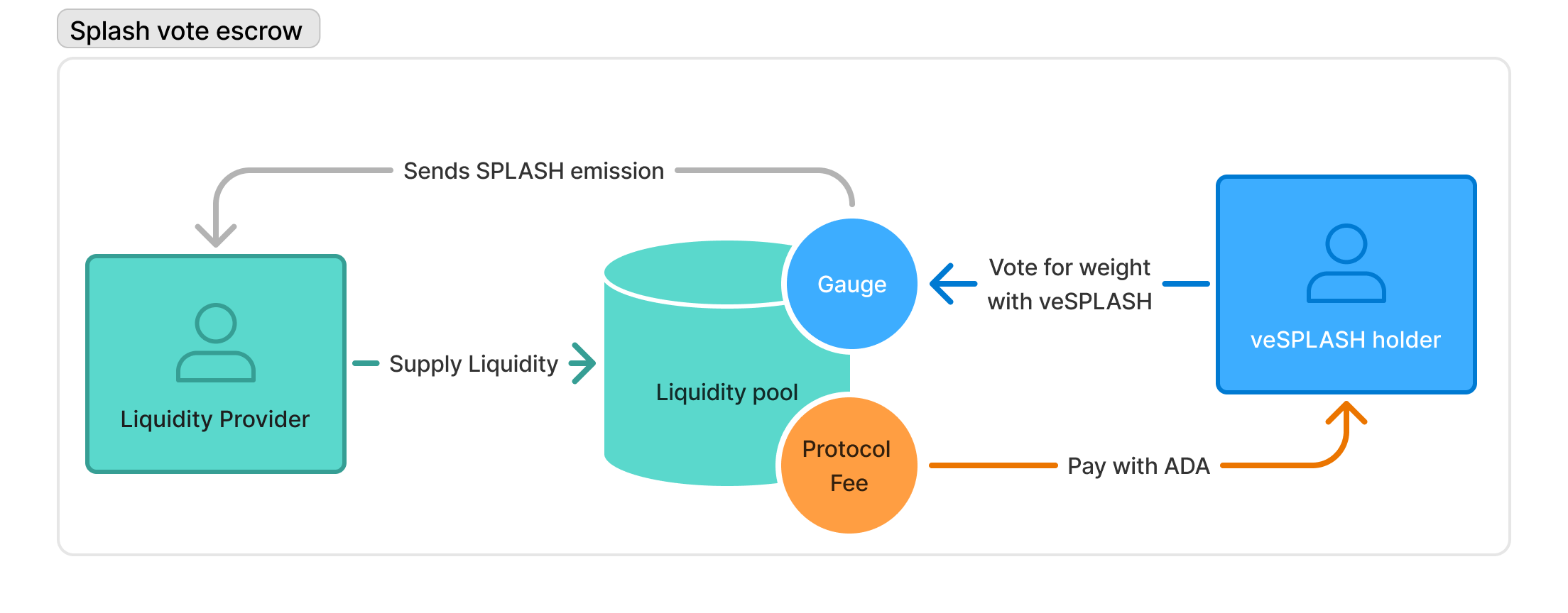 To get the share and voting power users must participate in the locking process, also known as [vote-escrow](https://docs.splash.trade/concepts/protocol-concepts/vote-escrow). In combination with [gauges](https://docs.splash.trade/gauges/understanding-gauges), such a system is designed to build deep liquidity, promote long-term token-holder alignment, and facilitate fair protocol fee distribution.